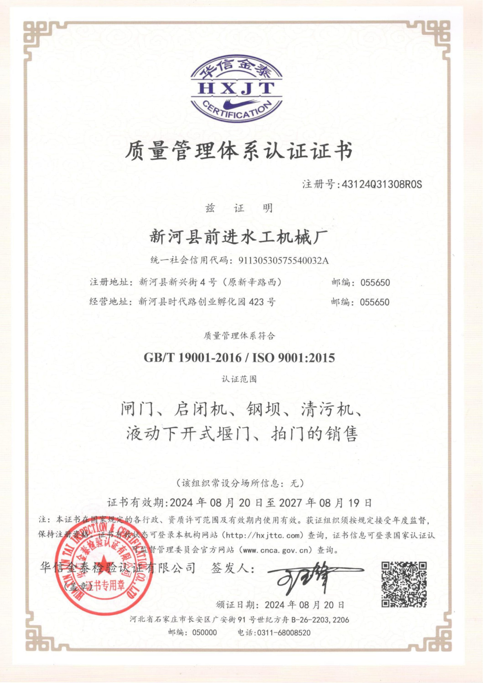 新河縣前進(jìn)水工機(jī)械廠是一家專門從事水利工程設(shè)備研發(fā)生產(chǎn)的廠家,現(xiàn)有員工228人,各類高、中級專業(yè)工程技術(shù)人員近30人,技術(shù)生產(chǎn)工人180多人。公司占地面積14674平方米。公司擁有車、鉗、刨、銑、冷作、鈑金、鑄造等,工種齊全,加工能力和技術(shù)力量雄厚,并具備理化測試手段與儀器設(shè)備。前進(jìn)水工專注景觀閘門,鋼壩,合頁壩,液壓升降壩,液壓閘門,臥倒門,一字門,人字門,液壓啟閉機(jī),卷揚(yáng)啟閉機(jī),螺桿啟閉機(jī),清污機(jī),除污機(jī),閘門,拍門等設(shè)備的研發(fā)與生產(chǎn),是新河水利工程產(chǎn)品行業(yè)的領(lǐng)跑者,不僅在同行業(yè)群中揭起了一次又一次的技術(shù)革新,更為水利工程企業(yè)提供了更高更大的選擇平臺。